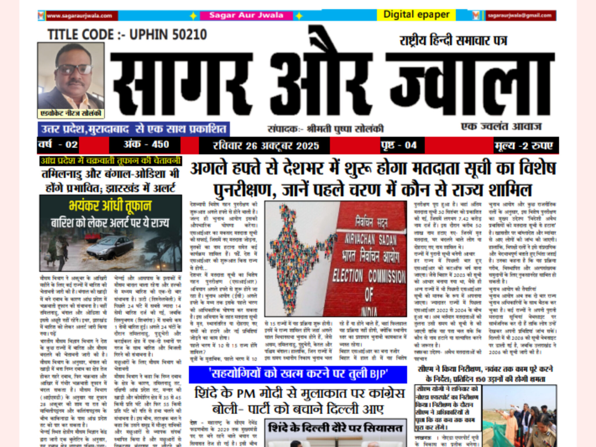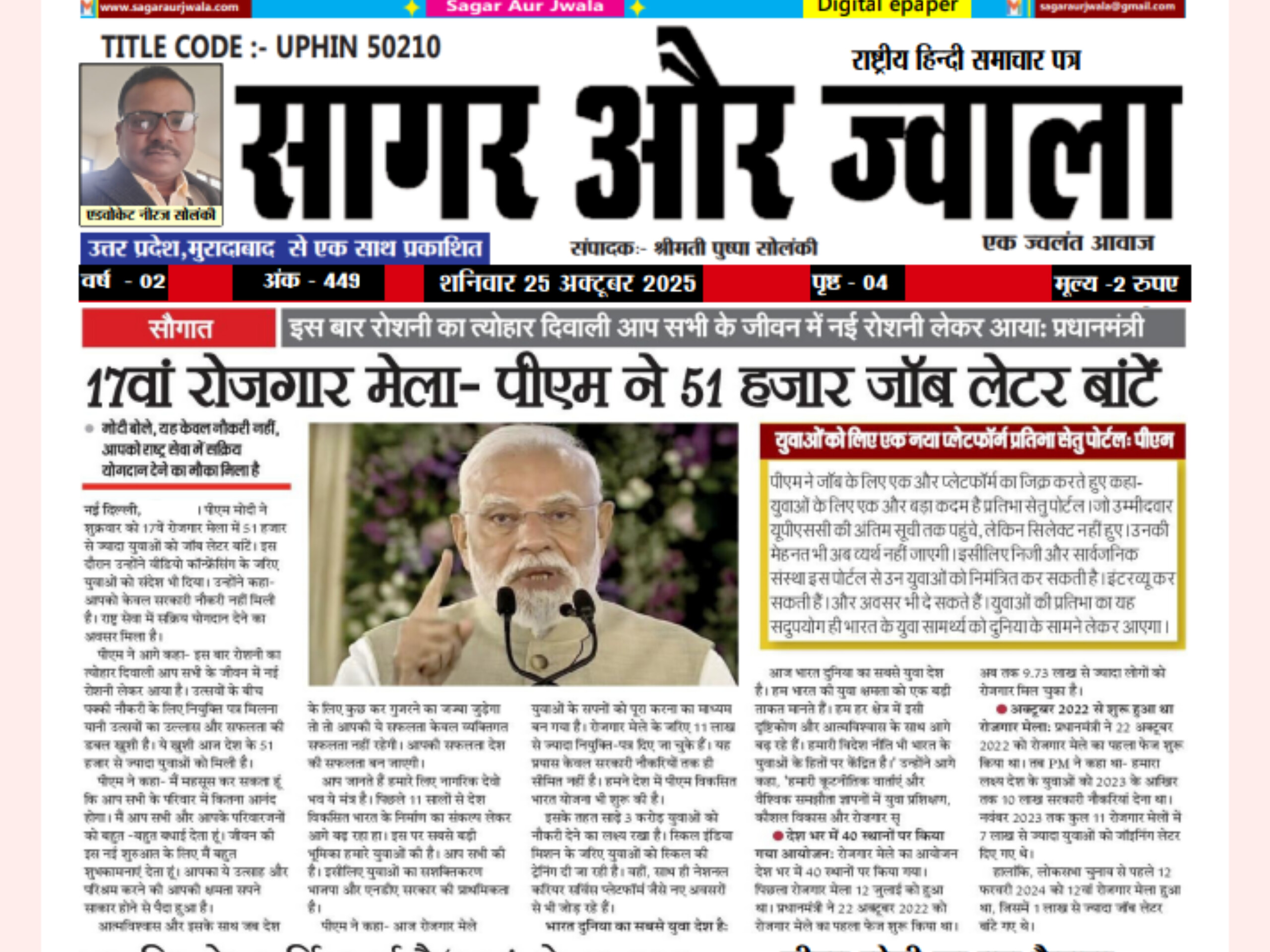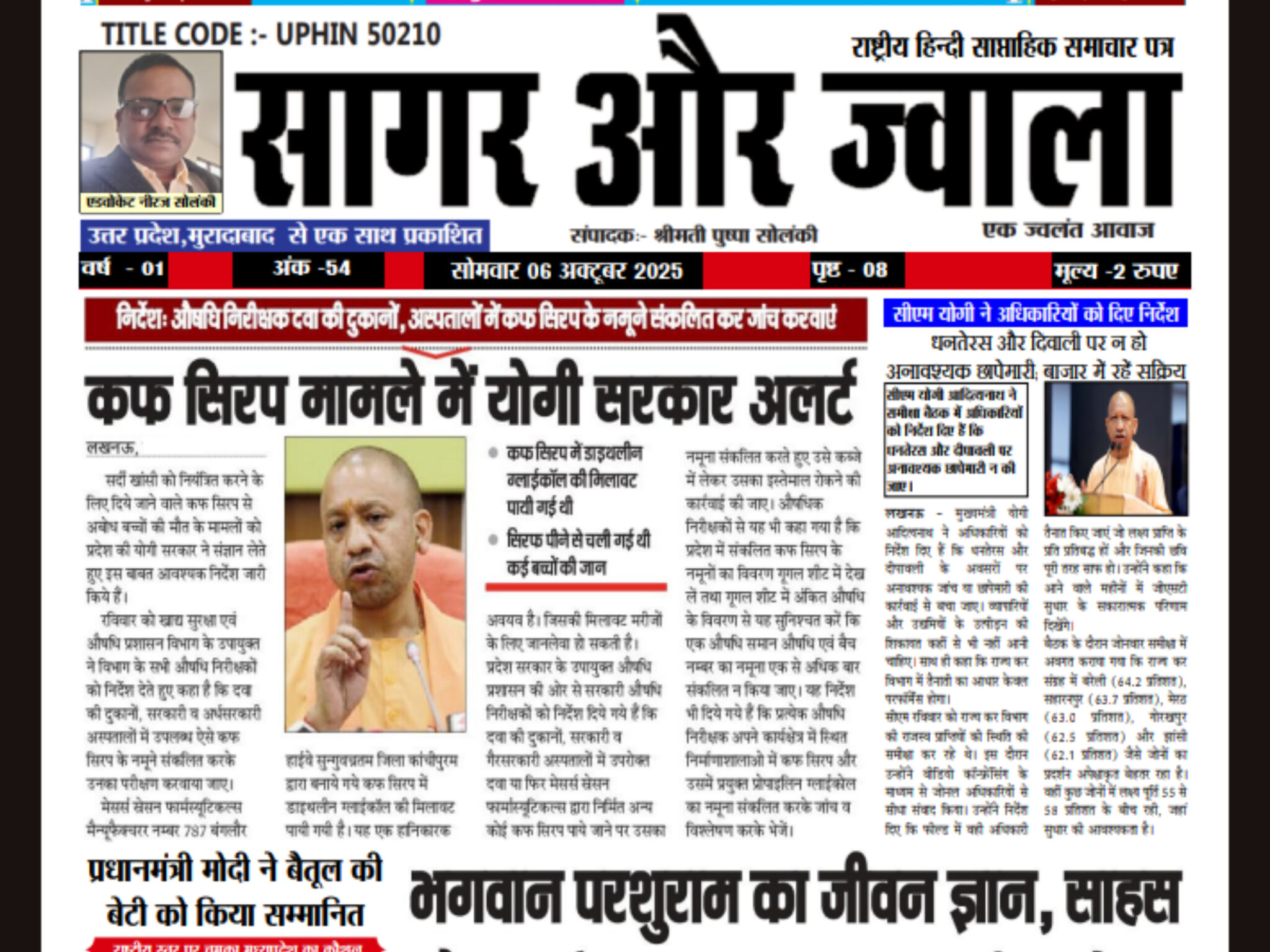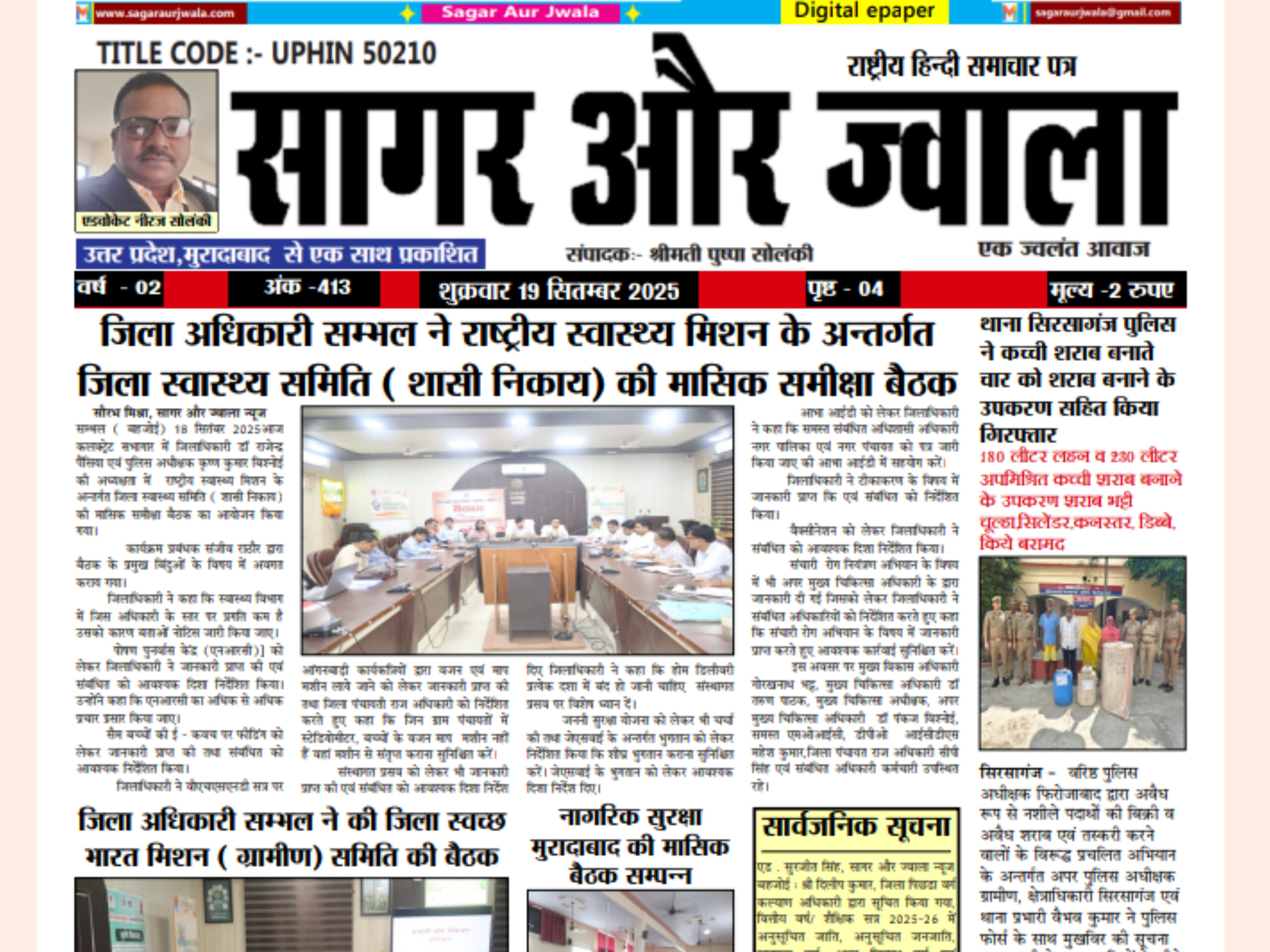 समाचार पत्र एवं वेबसाइट हिंदी भाषा की भारत की अग्रणी संगठन प्रकाशन सामग्री में से एक है। हम मोबाइल और डिजिटल प्रकाशन में अग्रणी के रूप में विभिन्न श्रेणियों में सामग्री प्रकाशित करते है और समाचार, ज्योतिष, आध्यात्मिक, धार्मिक और मनोरंजन सामग्री में अग्रणी हैं।