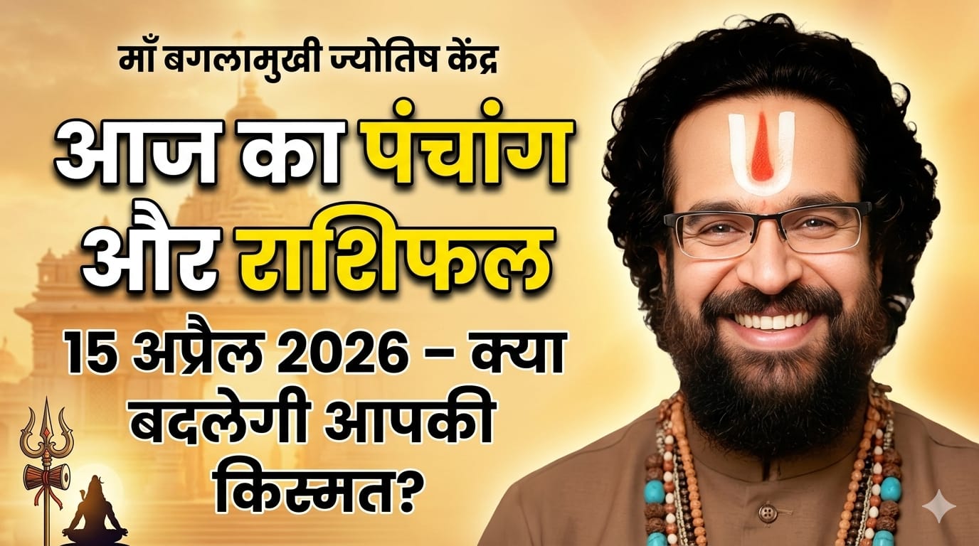 क्या आज आपकी किस्मत करवट ले रही है? जानिए 15 अप्रैल 2026 का विस्तृत पंचांग और राशिफल माँ बगलामुखी ऑनलाइन ज्योतिष केंद्र की दिव्य प्रस्तुति