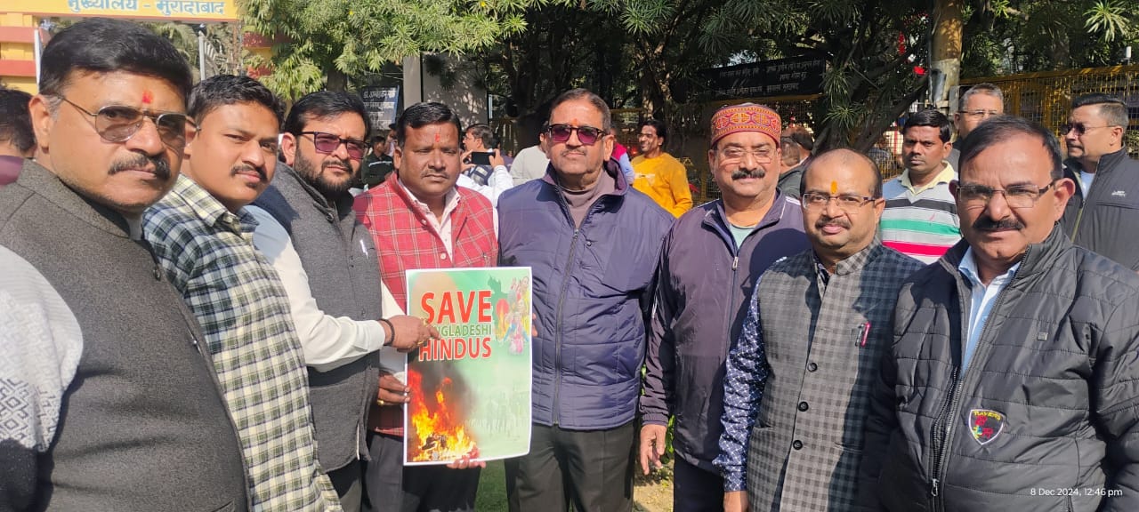 मुरादाबाद: सागर और ज्वाला न्यूज।बांग्लादेश में हिंदुओं पर हो रहे अत्याचार के विरोध में मुरादाबाद में आक्रोश देखने को मिला। मुरादाबाद में सकल हिंदू समाज प्रदर्शन करते हुए सड़कों पर उतरा।