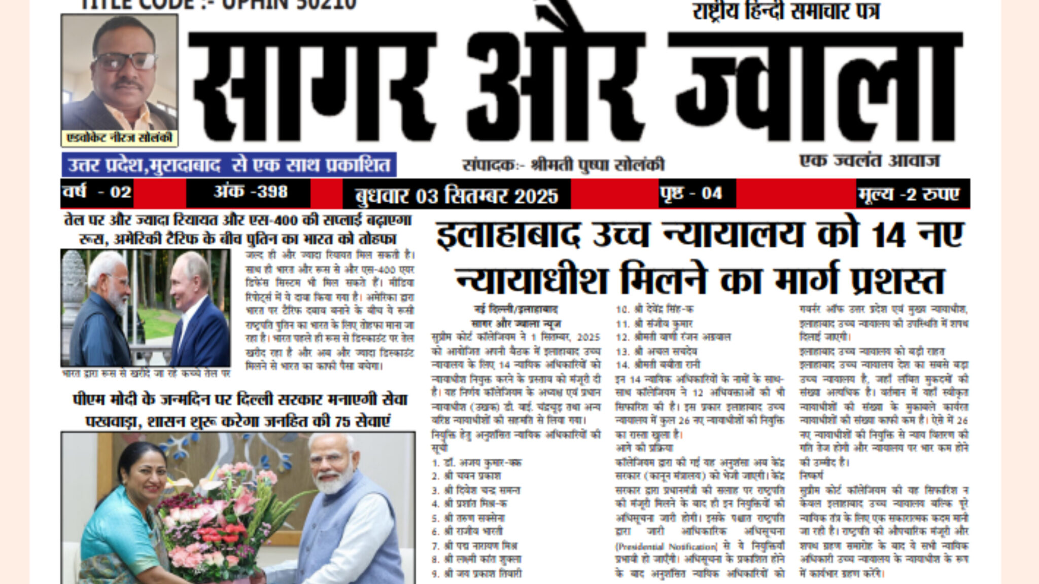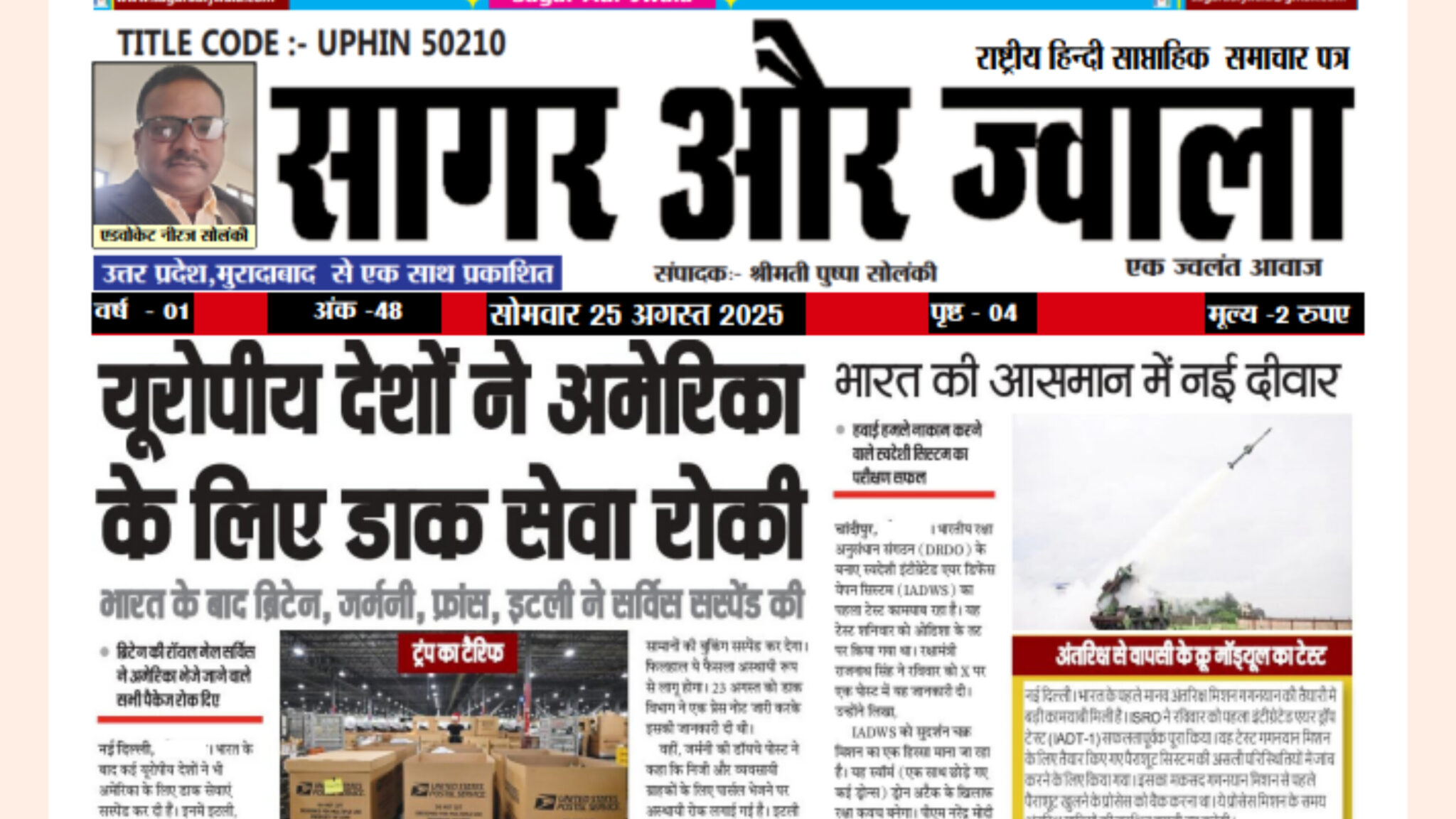 समाचार पत्र एवं वेबसाइट हिंदी भाषा की भारत की अग्रणी संगठन प्रकाशन सामग्री में से एक है। हम मोबाइल और डिजिटल प्रकाशन में अग्रणी के रूप में विभिन्न श्रेणियों में सामग्री प्रकाशित करते है और समाचार, ज्योतिष, आध्यात्मिक, धार्मिक और मनोरंजन सामग्री में अग्रणी हैं।