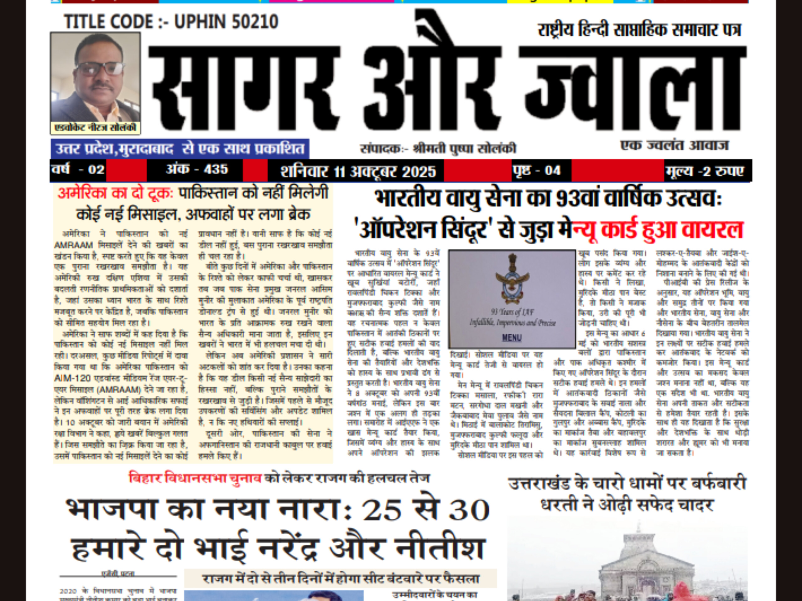 समाचार पत्र एवं वेबसाइट हिंदी भाषा की भारत की अग्रणी संगठन प्रकाशन सामग्री में से एक है। हम मोबाइल और डिजिटल प्रकाशन में अग्रणी के रूप में विभिन्न श्रेणियों में सामग्री प्रकाशित करते है और समाचार, ज्योतिष, आध्यात्मिक, धार्मिक और मनोरंजन सामग्री में अग्रणी हैं।