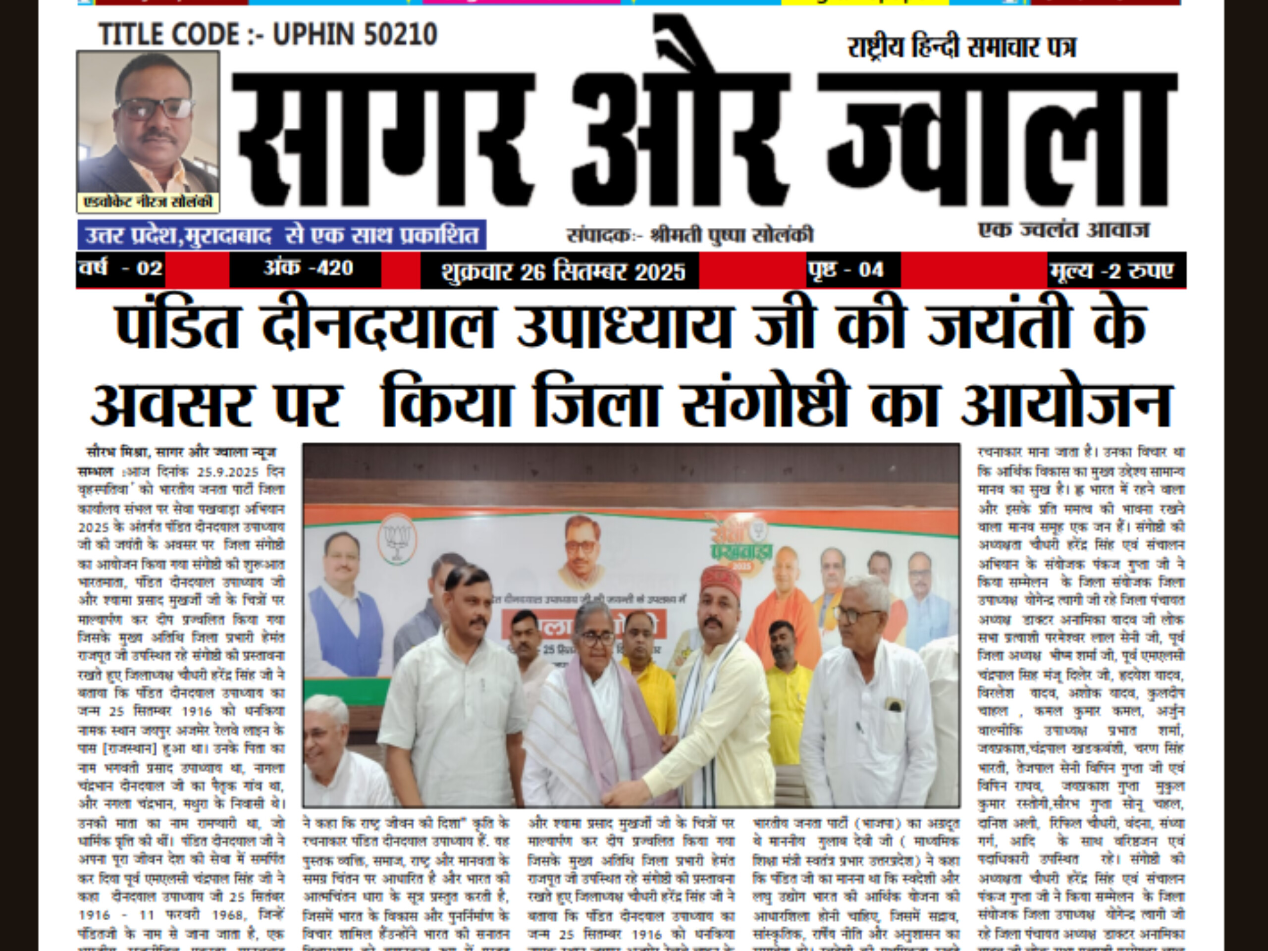 समाचार पत्र एवं वेबसाइट हिंदी भाषा की भारत की अग्रणी संगठन प्रकाशन सामग्री में से एक है। हम मोबाइल और डिजिटल प्रकाशन में अग्रणी के रूप में विभिन्न श्रेणियों में सामग्री प्रकाशित करते है और समाचार, ज्योतिष, आध्यात्मिक, धार्मिक और मनोरंजन सामग्री में अग्रणी हैं।