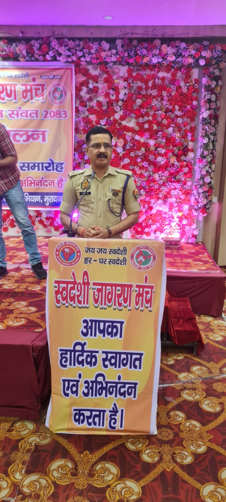 कार्यक्रम के मुख्य अतिथि पुलिस अधीक्षक नगर मुरादाबाद श्री रणविजय सिंह रहे, जबकि विशिष्ट अतिथि के रूप में राष्ट्रीय स्वयंसेवक संघ के विभाग प्रचारक ब्रजमोहन जी उपस्थित रहे। इसके अतिरिक्त स्वदेशी जागरण मंच के राष्ट्रीय सहसंयोजक डॉ. राजीव कुमार की विशेष उपस्थिति ने कार्यक्रम को और अधिक गरिमा प्रदान की।