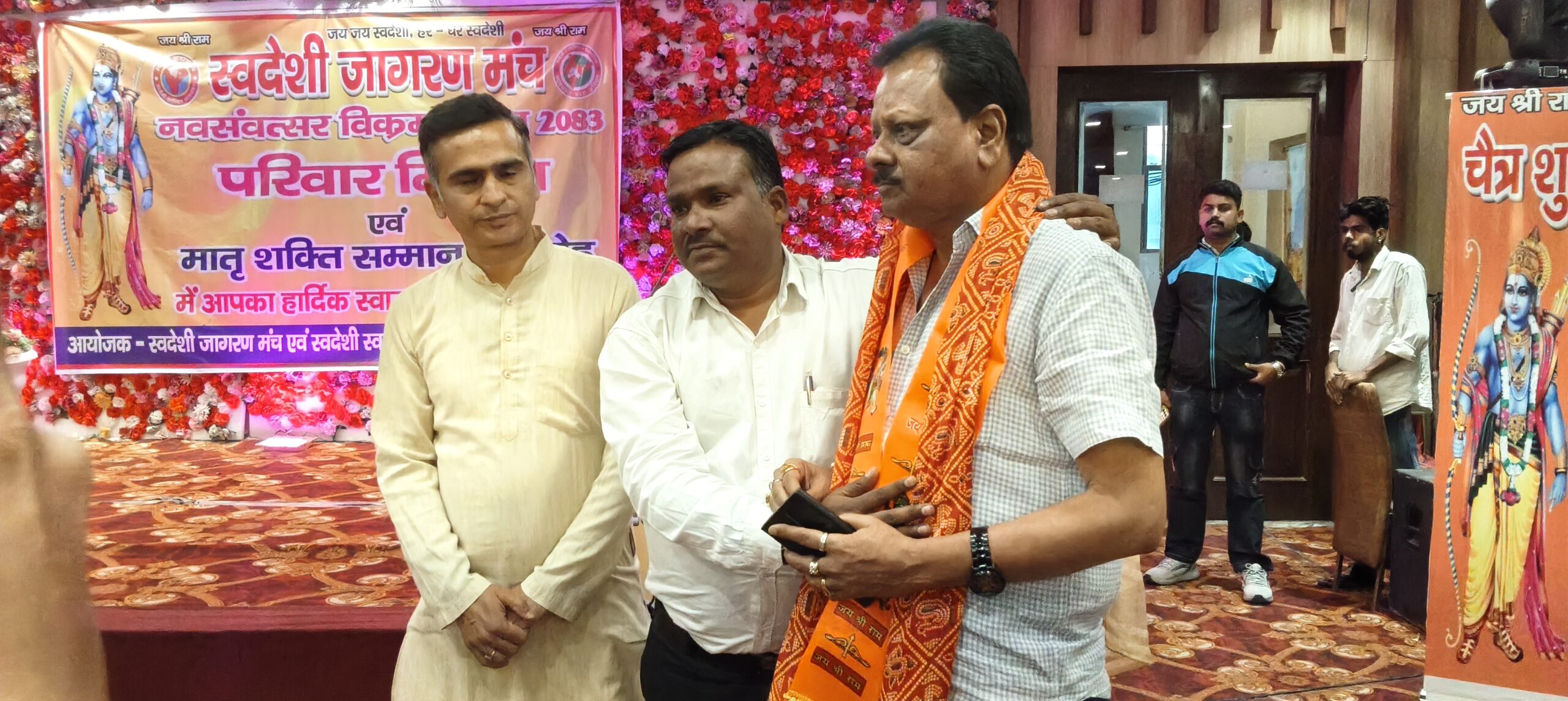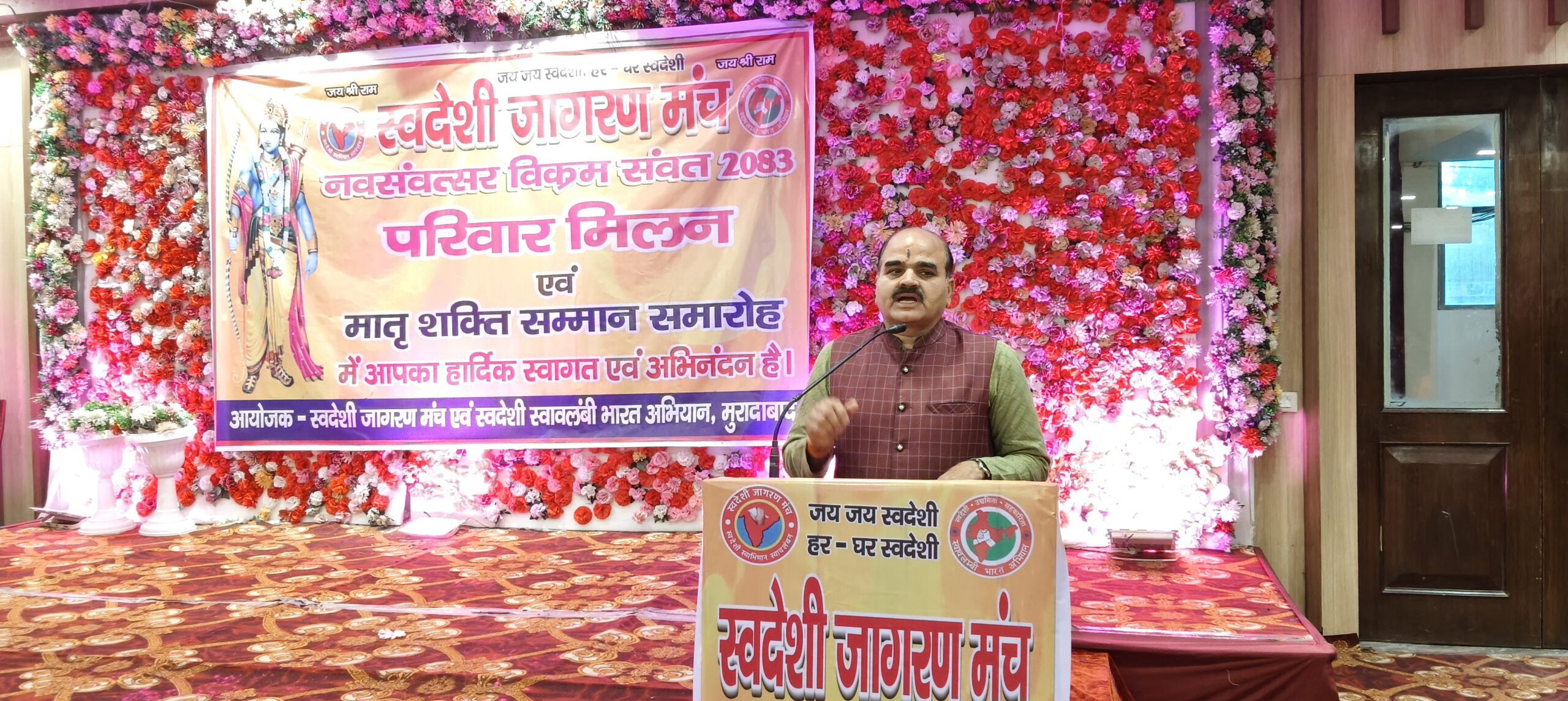 नव संवत्सर विक्रम संवत 2083 के पावन अवसर पर स्वदेशी जागरण मंच, मुरादाबाद द्वारा “परिवार मिलन एवं मातृ शक्ति सम्मान समारोह” का भव्य एवं गरिमामयी आयोजन दिल्ली रोड स्थित क्लासिक बैंक्विट हॉल में संपन्न हुआ। कार्यक्रम में समाज के विभिन्न वर्गों से आए गणमान्य व्यक्तियों, परिवारों एवं मातृशक्ति की उत्साहपूर्ण एवं प्रभावशाली उपस्थिति रही।